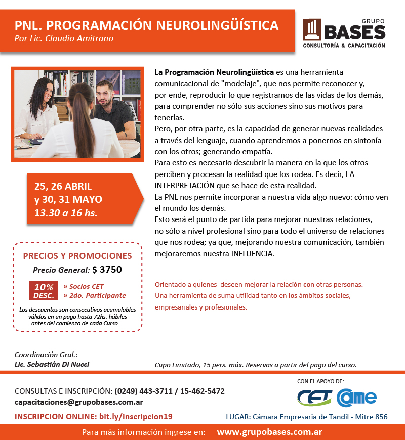 Orientado a quienes deseen mejorar la relación con otras personas. Una herramienta de suma utilidad tanto en los ámbitos sociales, empresariales y profesionales.