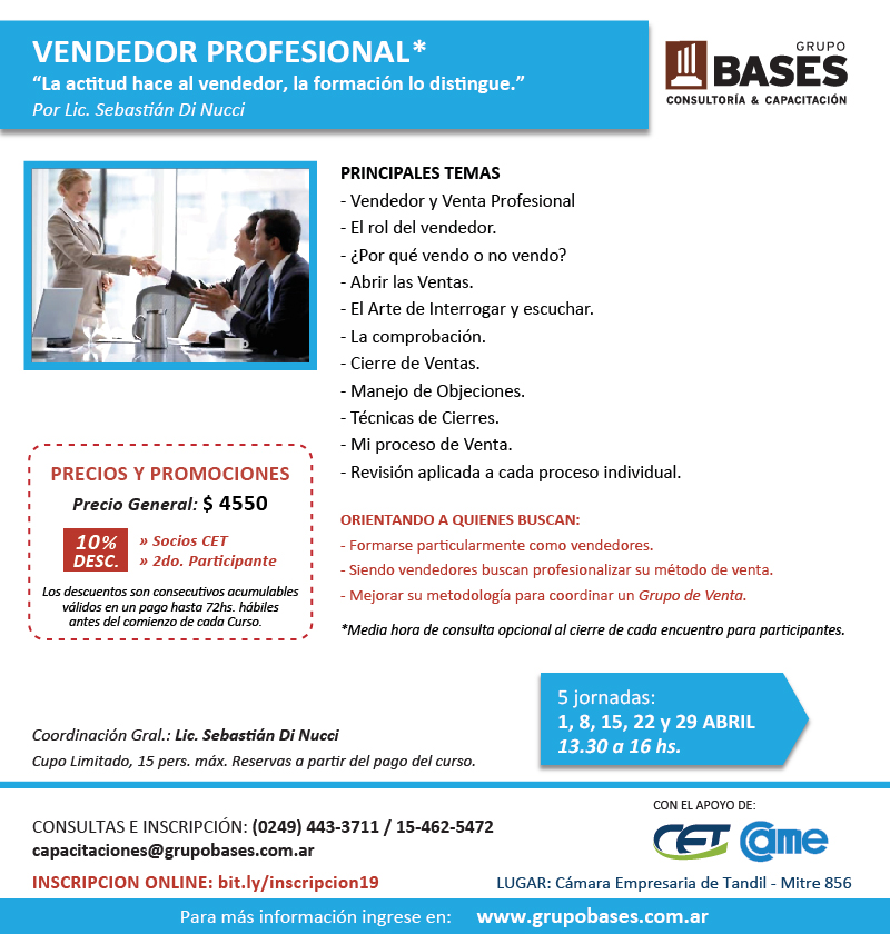 Vendedor Profesional: "La actitud hace al vendedor la formación lo distingue"